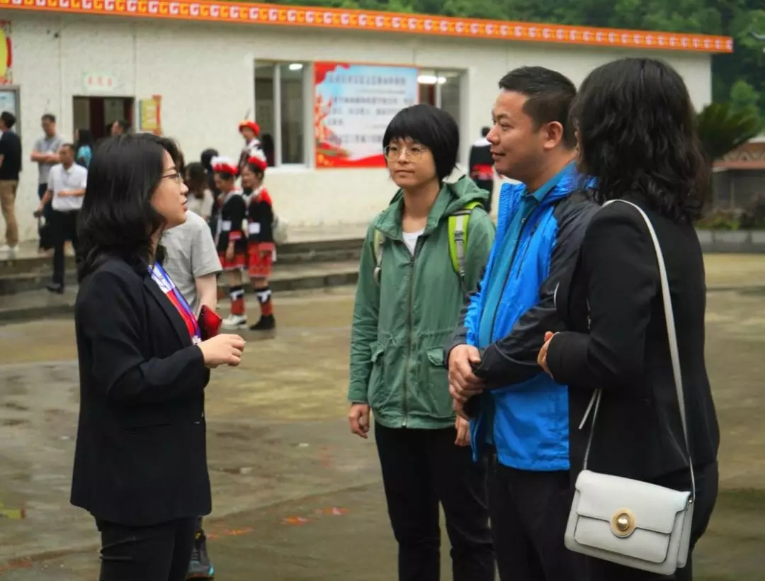 長江商學院廣東校友會會長蔡曉東,校友會常務副會長、廣東省長江公益基金會主席王澤瑤,校友會常務副會長兼秘書長黃挺,校友會副會長、廣東省長江公益基金會理事張?zhí)炫嗟纫恍衼淼角暹h連南,出席支持長江公益“苔花開”鄉(xiāng)村兒童美育計劃&廣東省教育廳學校美育工作現(xiàn)場交流活動。