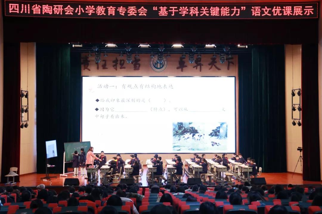 2019年11月28日—29日,由四川省陶行知研究會、新華文軒出版?zhèn)髅焦煞萦邢薰?、自貢市教育和體育局主辦,四川省陶行知研究會小學(xué)教育專業(yè)委員會、新華文軒出版?zhèn)髅焦煞萦邢薰靖豁樂止?、富順縣教育和體育局、自貢衡川實驗學(xué)校承辦的四川省陶研會小學(xué)教育專業(yè)委員會“基于學(xué)科關(guān)鍵能力”的優(yōu)課展示會、四川省陶行知研究會小學(xué)專業(yè)委員會第二屆教師年會專家報告會在我校隆重舉行。