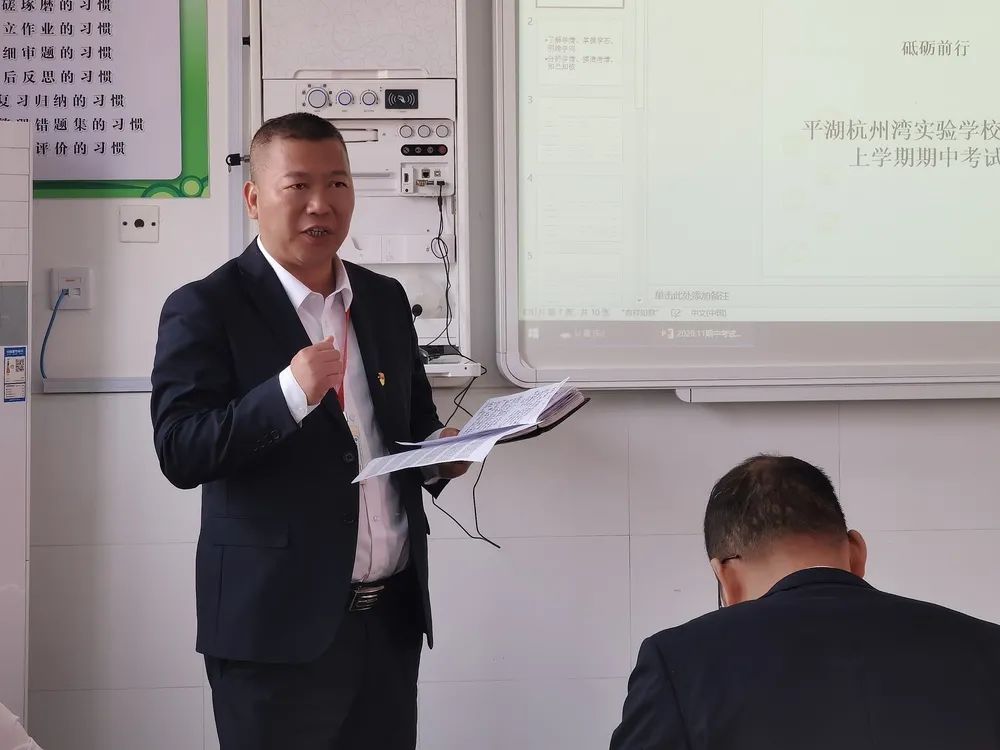 伴隨著初冬的腳步,11月8日上午,我校九年級全體教師在培英樓503教室召開了期中考試質(zhì)量分析會。平湖杭州灣實(shí)驗(yàn)學(xué)校理事長肖家興博士、三方合作辦學(xué)總指揮曹躍平校長及學(xué)校初高中部分行政領(lǐng)導(dǎo)參加了此次會議。